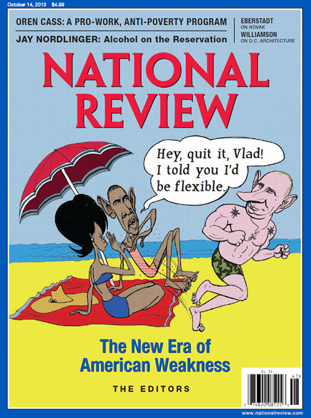 When it comes to overseas interventions and growing the military, National Review again has been extremely supportive for its entire run. Over at The American Conservative, former National Review staffer Rod Dreher reminds readers of "David Frum's infamous 'Unpatriotic Conservatives' cover story for the magazine, published on the brink of the Iraq War in 2003." Frum's article was one of the ideological high-colonics the publication administers on a semi-regular basis, clearing out fellow travelers whose apostasies are deemed no longer worth entertaining (Frum himself would eventually be swept away later in the Aughts). Frum's article concludes: