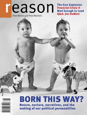Our entire May 2012 issue is now available online. Don't miss Matt Welch on why big government is offensive, Jonathan Haidt on the making of our political personalities, Chris Kjorness on capitalism and the birth of the blues, and Greg Beato on why the firearms boom is good for the American economy, plus our complete Citings and Briefly Noted sections, the Artifact, and much more.