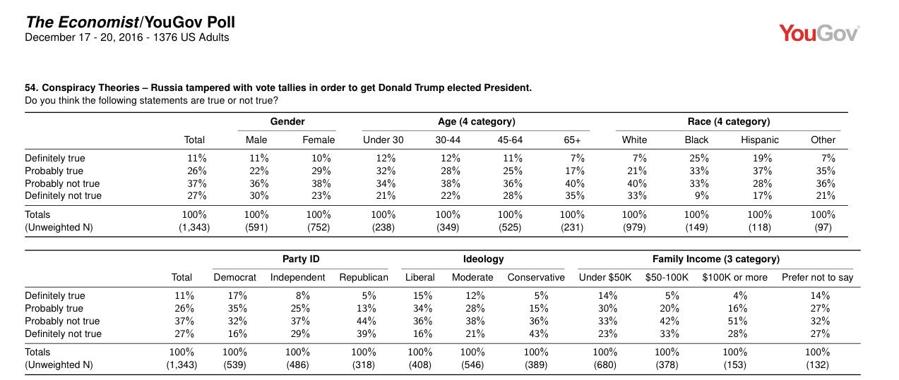 the question specifies 'russia tampered with vote-tallies', so its not like it was some misinterpretation of the question.