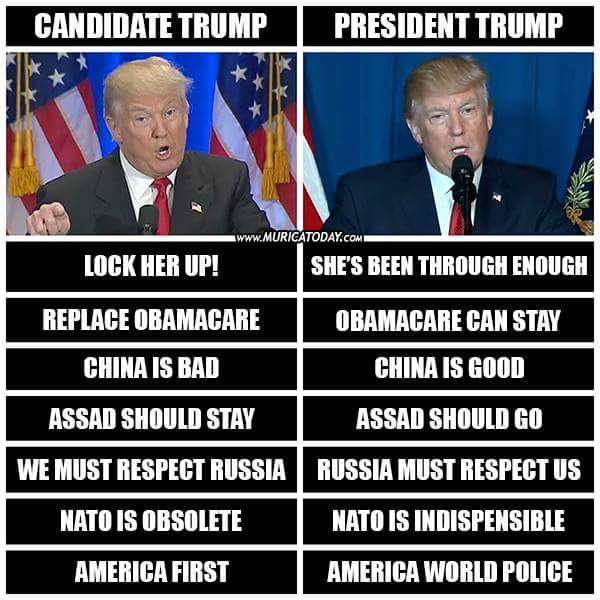 Oh, I don't know, breaking his promises to get the fuck out of Afghanistan and sending more troops [because we never tried that before, apparently] just because Mr. Clean/McMaster showed him pictures of girls in miniskirts from the fuckiing 1970's comes to mind. Talk about a war boner.