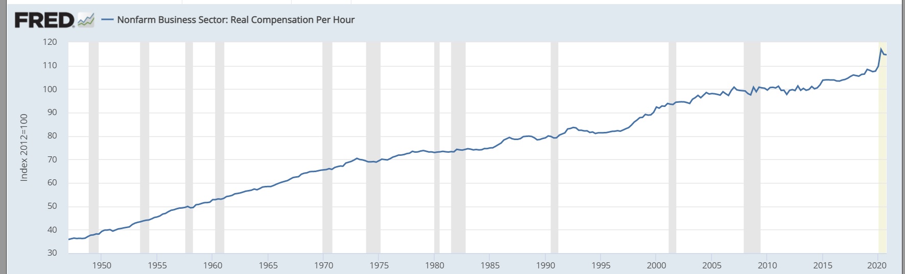 Protectionism is so hot right now, but that doesn't mean it's the right course. Yellen, of course, knows this. The idea that a global system of trade has been "so negative" for such a "large share of the population" is simply not borne out by the data. Probably the most direct way to disprove this claim is to look at the average hourly earnings of American workers over the past 70 years.