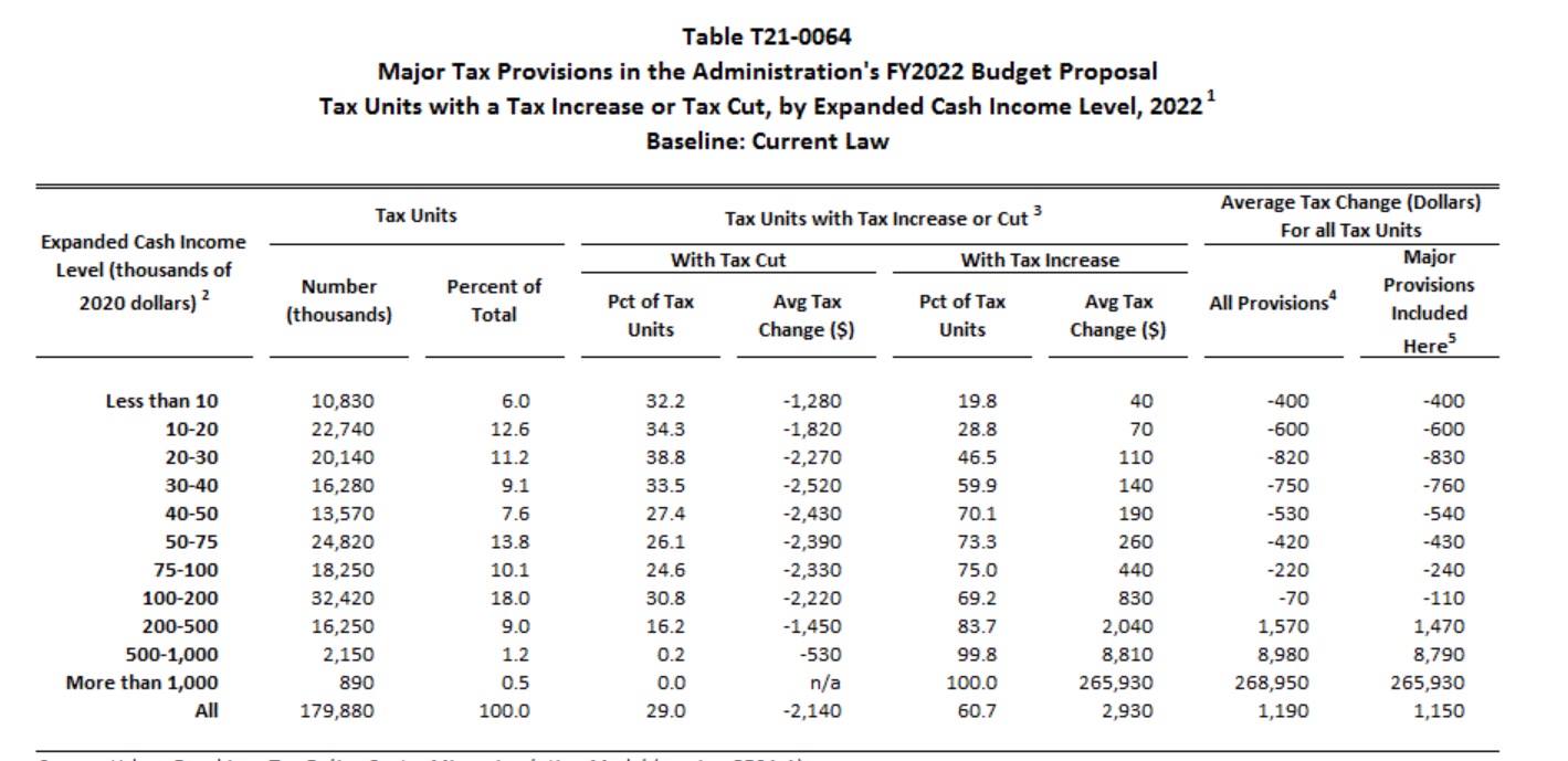 That means, for example, a worker earning $80,000 annually would not see the government extract a larger share of her income via payroll taxes, which fund Social Security and health care entitlements, or via income taxes. But the higher taxes that Biden has proposed on corporations would, under the TPC analysis, be passed along to shareholders and workers in the form of lower investment earnings and compensation, respectively. As a result, many middle- and low-income individuals and households could end up with a larger tax burden even without seeing their taxes hiked directly.