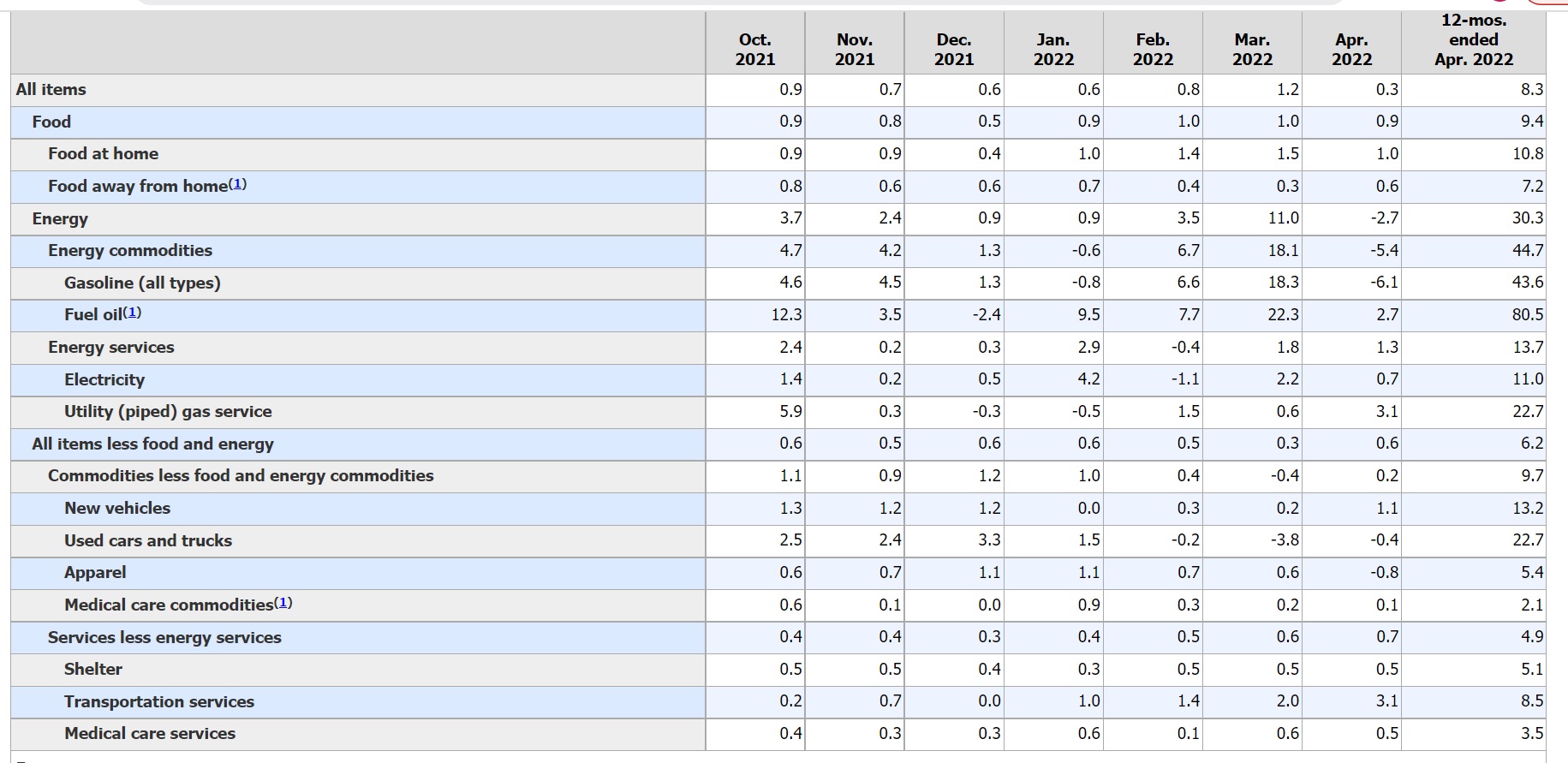 Data released Wednesday morning by the Department of Labor show that annualized inflation fell from 8.5 percent in March to 8.3 percent in April, marking the first time in eight months that the country's most important inflation indicator declined, even if only slightly. Prices rose by an average of 0.3 percent in April, down significantly from March's 1.2 percent increase that drove annual inflation rates to a 40-year high.