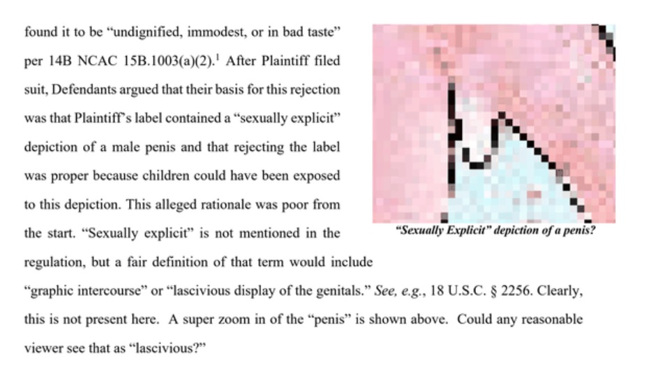 "It may not have all the bells and whistles, but it's a penis," attorneys for the North Carolina ABC wrote—yes, really—in response.
