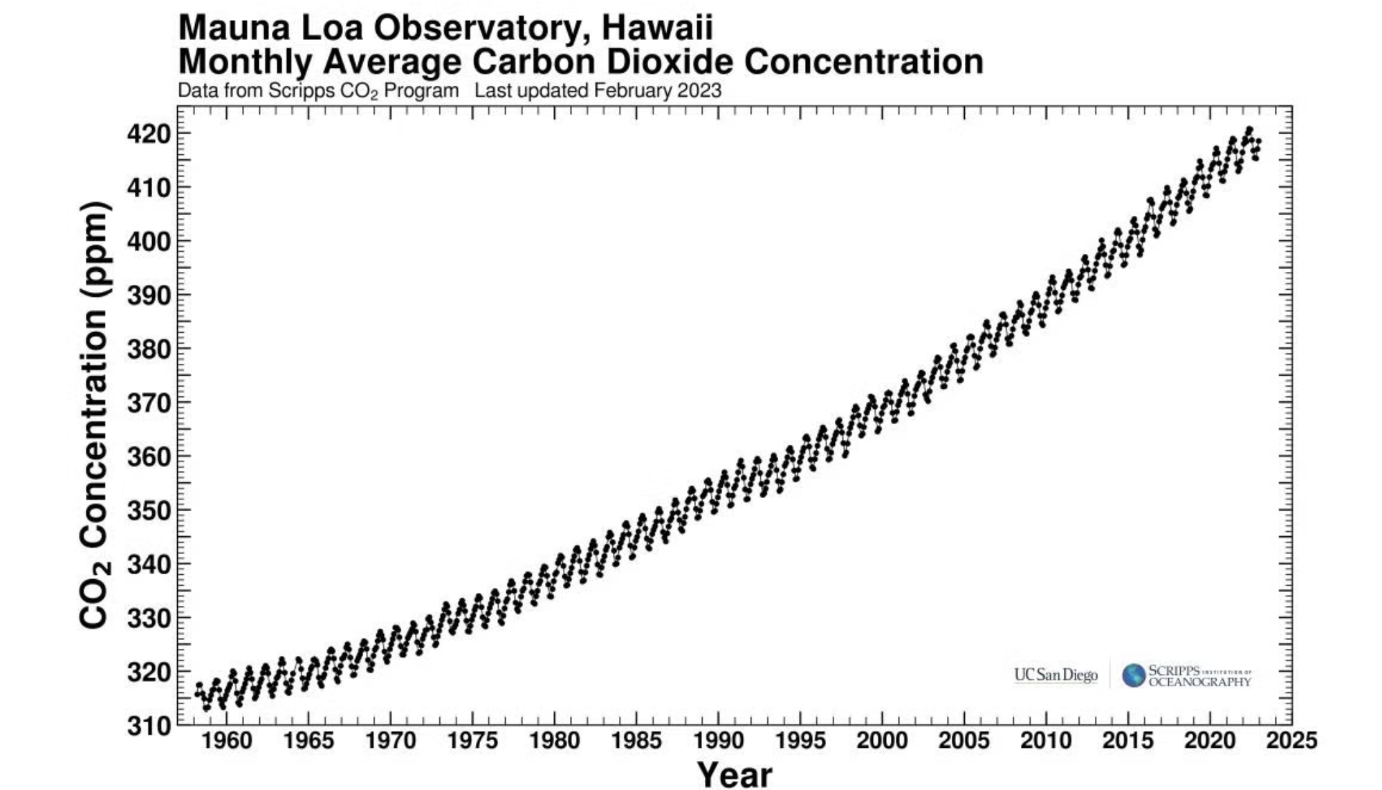Since the UNFCCC was negotiated at the Earth Summit in Rio de Janeiro in 1992, the concentration of greenhouse warming carbon dioxide (CO2) in the global atmosphere has been anything but close to stabilized. Instead, it has increased from 359 parts per million (ppm) to 425 ppm this year. And the increase is speeding up. The World Meteorological Organization reports that from 2023 to 2024, the global average concentration of CO2 "surged by 3.5 ppm, the largest increase since modern measurements started in 1957." The increase is largely the result of rising emissions from burning oil, natural gas, and coal to produce the energy that drives economic growth.