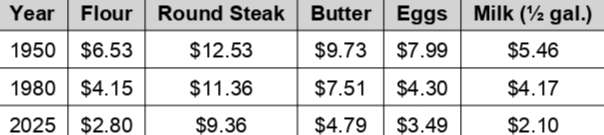What about the price of foods? As Americans all too well know, the USDA reports that food prices rose by 23.6 percent between 2020 and 2024. Grocery prices do bounce around, especially during periods of high inflation like what we have recently been enduring. Nevertheless, the century-long trend has been falling prices for food staples, as shown by combining selected deflated Bureau of Labor Statistics and Federal Reserve Bank of St. Louis data on food prices.