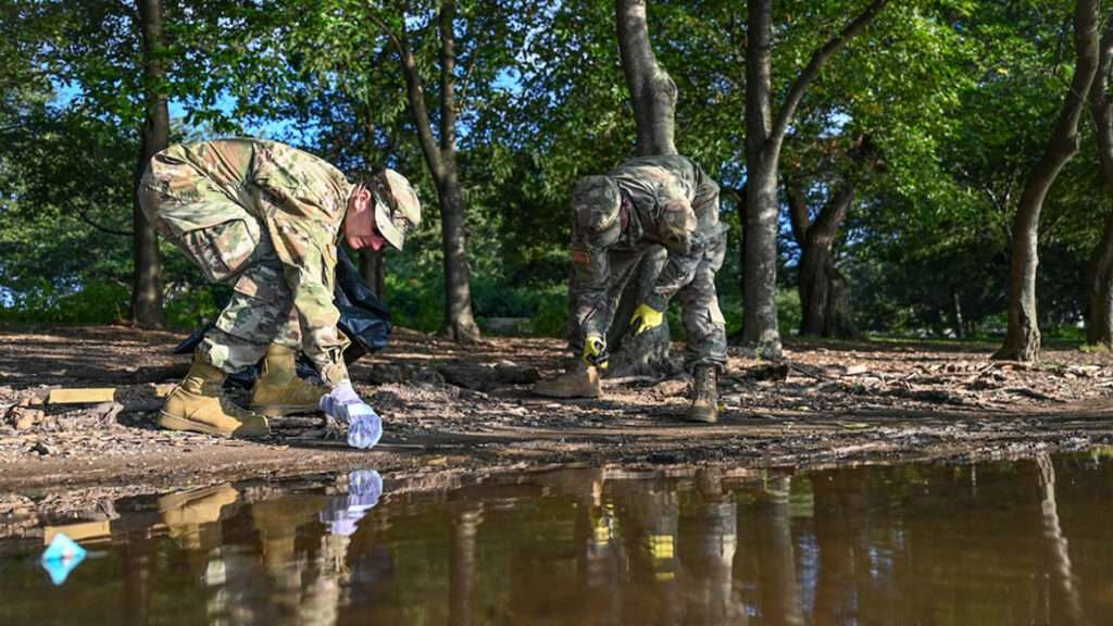 Uniformed and armed men and women can be seen all over the city wielding leaf blowers, hoses, and brooms as they do municipal chores.