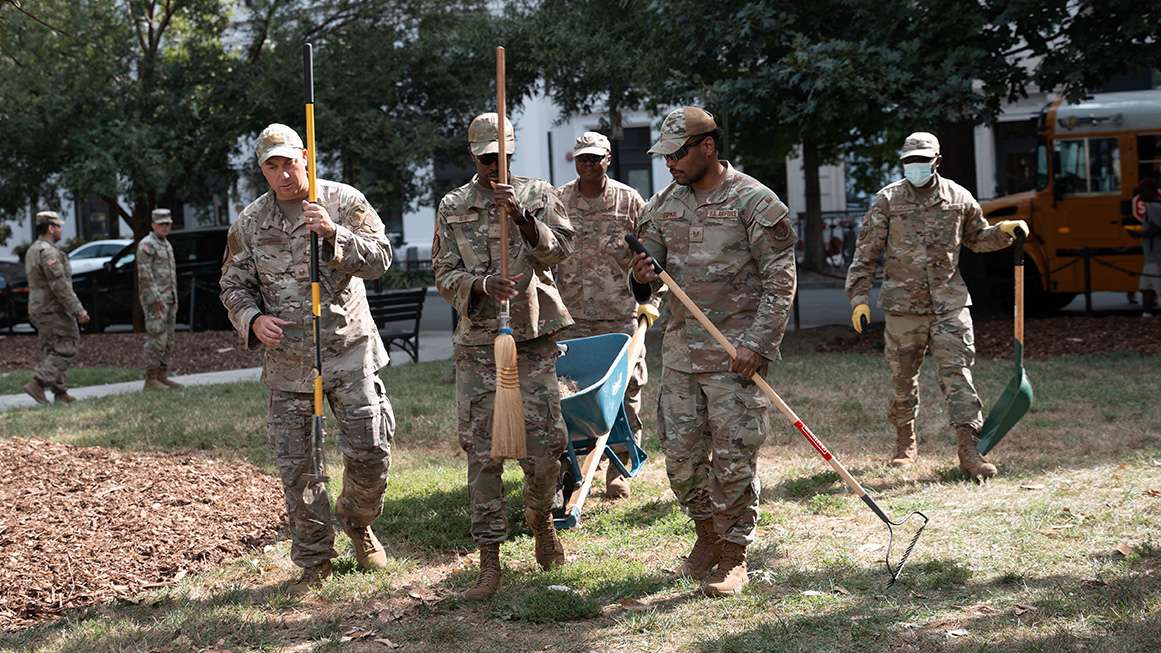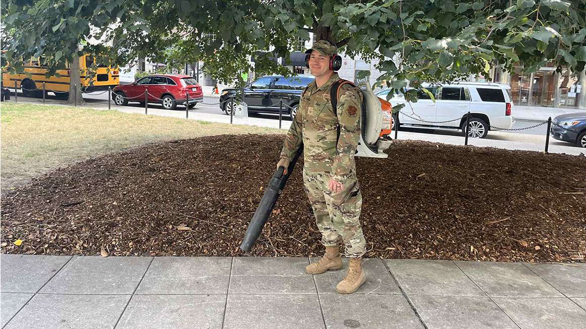 Uniformed and armed men and women can be seen all over the city wielding leaf blowers, hoses, and brooms as they do municipal chores.