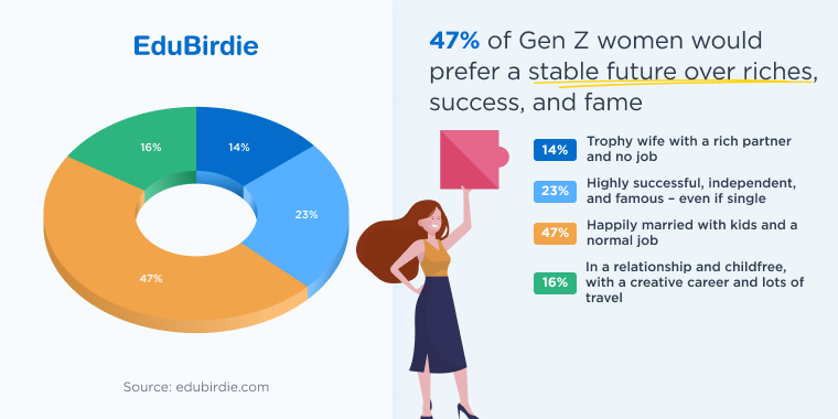 Girlboss ranked 2nd, digital nomad 3rd, and a strong 14% aspired to be a trophy wife — the classic MRS…