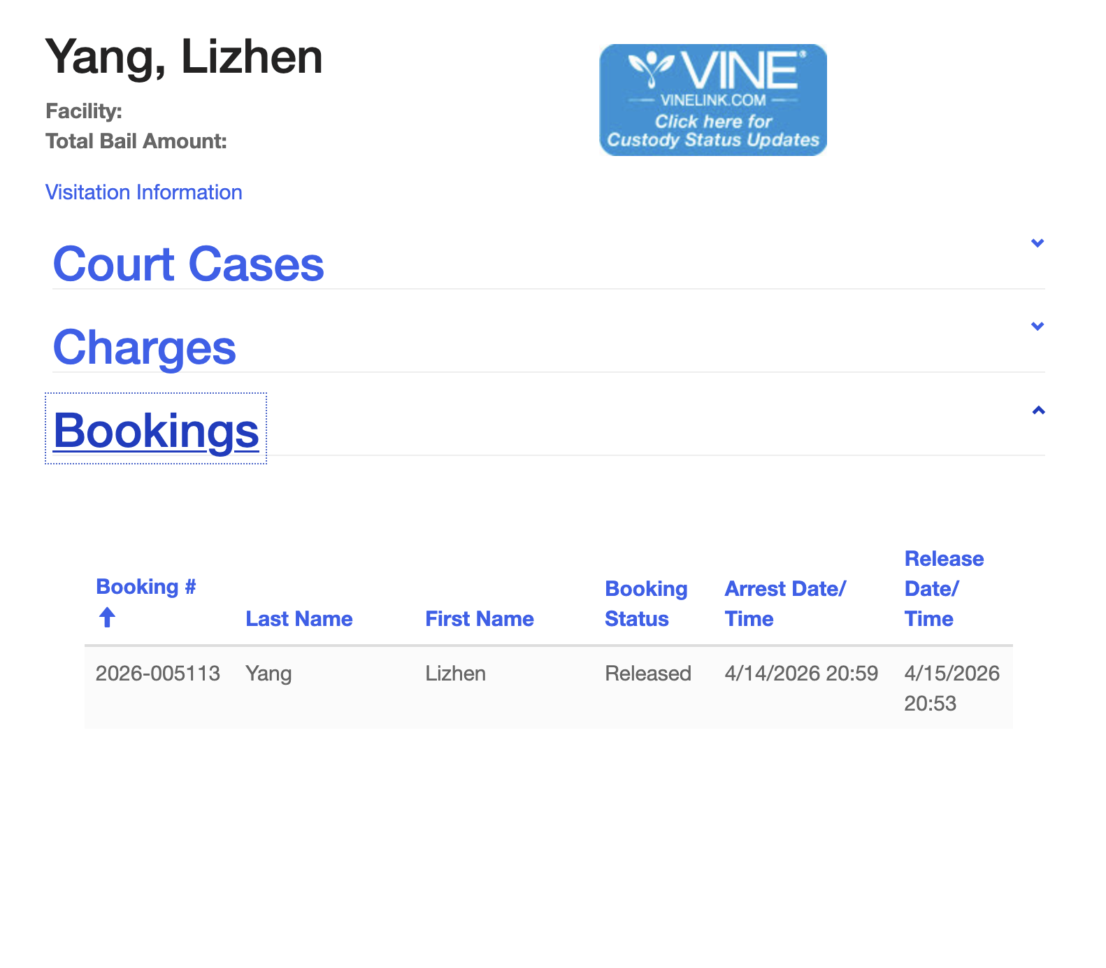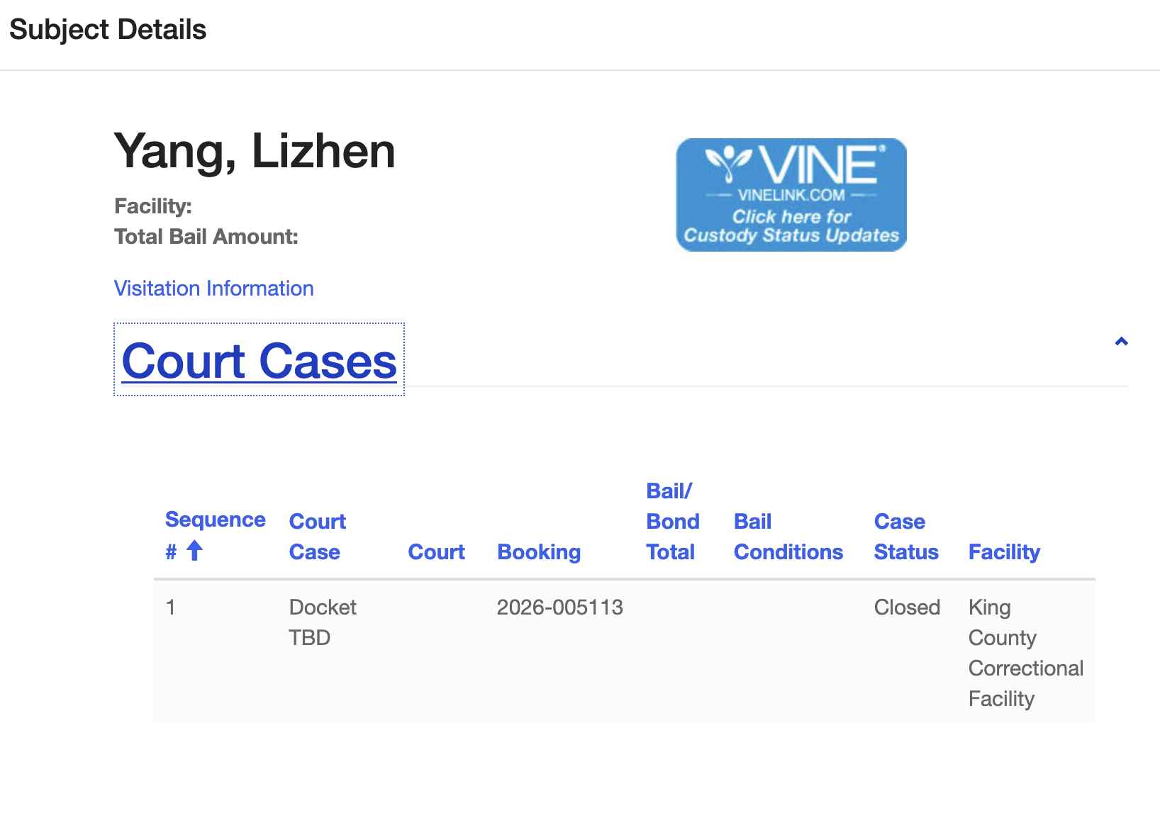 That person seems to have been Yang, who was booked into the King County Correctional Facility on April 14 on suspicion of promoting prostitution and human trafficking. She was released the next day, without charges. The King County jail information system now lists her case status as "closed."