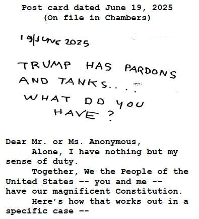 Judge Young did not take my advice. Instead, he styled a judicial decision as a 161-page letter to an anonymous postcard writer. It began in this fashion: