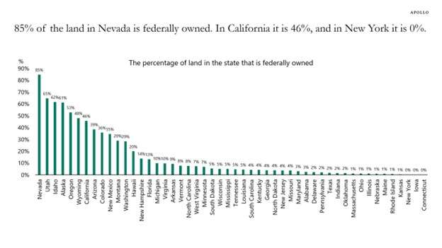 The enormous amounts of twelve western states that are federally owned are revealed again by this chart:
